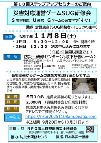 第10回ステップアップセミナー『災害対応運営ゲームSUG研修会』午後の部 | Peatix